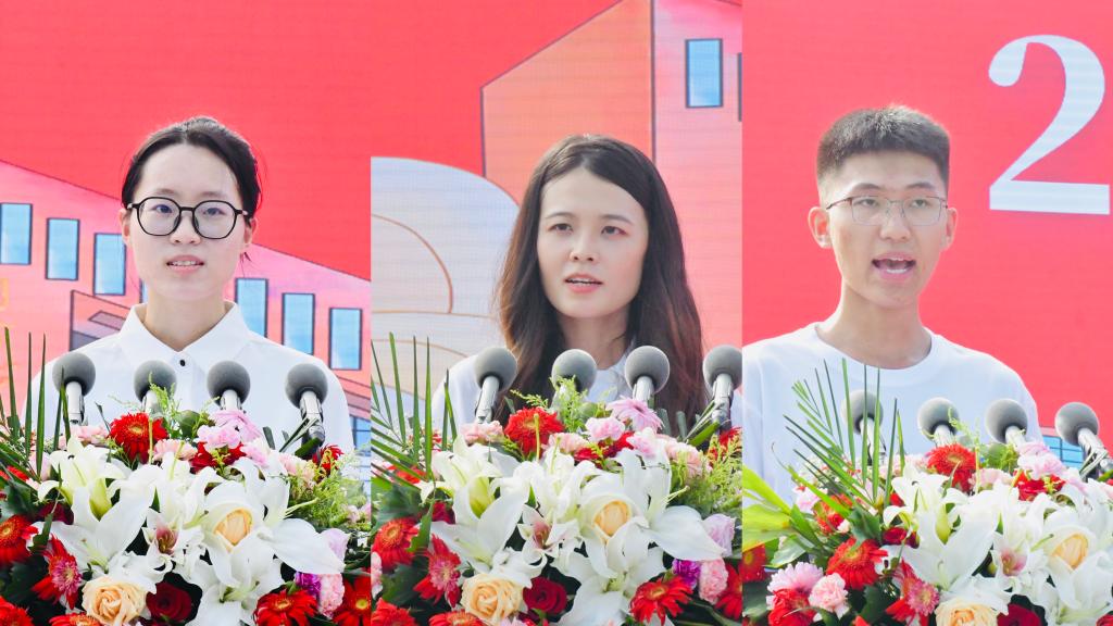 教师代表范琳伟分享了关于大学学习与生活的感悟,对同学们提出了三点希望:一要胸怀家国,志存高远;二要勇于探索,不懈奋斗;三要拥抱多元,学会社交。在校生代表许涌心从自身经历出发,勉励大家:一要追光而遇,沐光而行;二要学海无涯,勤耕不辍;三要请你勇敢,为了自己;四要无论何时,记得快乐。新生代表王泽鑫在发言中说,作为捕鱼达人
