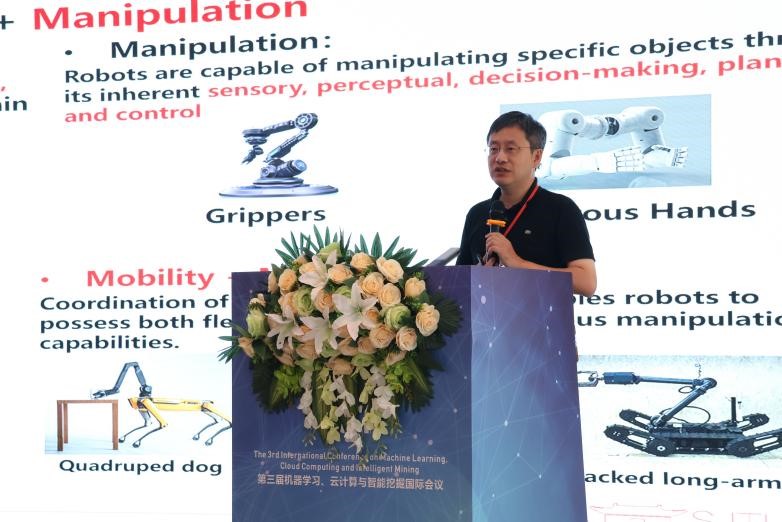 大会开幕式由会议主席上海交通大学王贺升教授主持,清华大学孙富春教授作为大会主席对会议历史以及本届会议情况进行了介绍。山东财经大学张云峰副院长代表主办方致开幕辞,对远道而来的与会嘉宾表示热烈的欢迎,对会议的顺利召开表示祝贺,并强调了机器学习、云计算与智能挖掘在当前及未来社会经济发展中的重要作用,并期待通过此次会议推动相关领域的技术交流与合作。