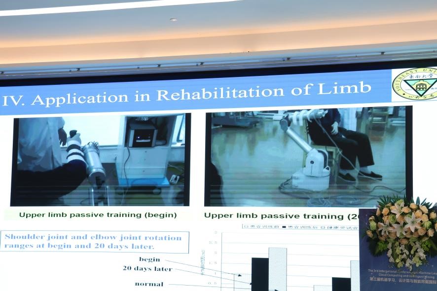自动化研究所侯增广教授发表了“基于BCI的康复机器人环控制”的报告。他就康复机器人的多模态生物信号采集与处理、基于脑机接口的智能交互和人环控制方法等方面的一些实验和临床尝试与范例展开讨论,并展望未来的发展前景。