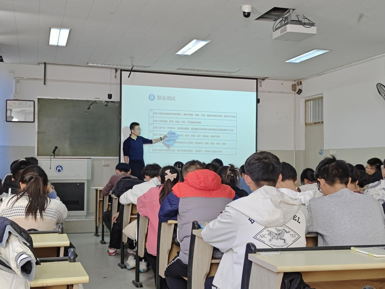 讲座开始,任楠以“乌龟、乌鸦、乌贼”互动游戏使同学们在轻松愉快的氛围下认识到自身性格特点。讲座中,任楠以“大学生心理健康与职业生涯唤醒”为主题,从MBTI性格类型测验、霍兰德职业兴趣测试岛屿理论等方面展开讲述,帮助同学们正确理解心理健康和自我性格,找到职业发展方向,并针对大学生面临的心理压力和困惑,进行深入分析,促进大学生心理成长。任楠结合自身多年就业规划经验,从专业角度为朋辈志愿者们进行答疑,使学生正确认清定位与目标,切实解决同学们在学习中产生的焦虑情绪。任楠强调:“面对日益严峻的就业形势,大学生要保持积极乐观的心态,关注自身心理健康,增强心理素质。同时,要学会调整心态,适应社会发展的需求,为自己的职业生涯打下坚实基础。”