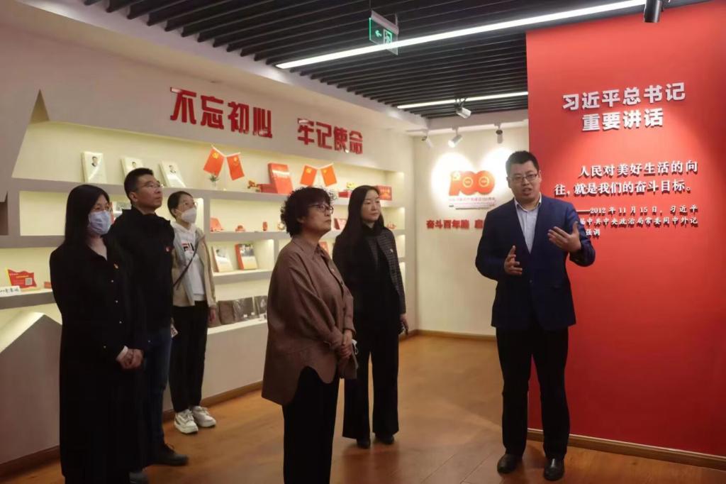 首先,支部党员在书城工作人员的带领下参观了山东书城“智慧党建书屋”。“智慧党建书屋”是山东书城结合新时代党建工作特点,创新打造的集阅读、学习、展示、会议、活动、交流、研学等功能于一体的多功能书屋。随后,支部召开了座谈会。