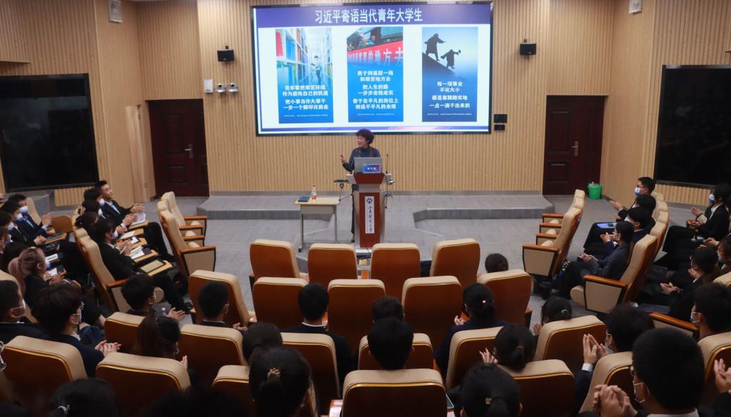 报告伊始,杨春丽从大学之问开篇,向同学们发出“大学是什么”“大学生是谁”“大学要如何做”三个问题,由此引出习近平总书记对当代青年的寄托,鼓励大学生要做有理想、敢担当、能吃苦、肯奋斗的新时代好青年。