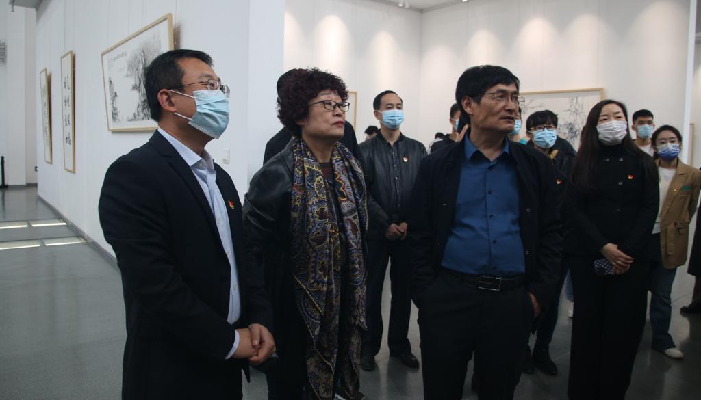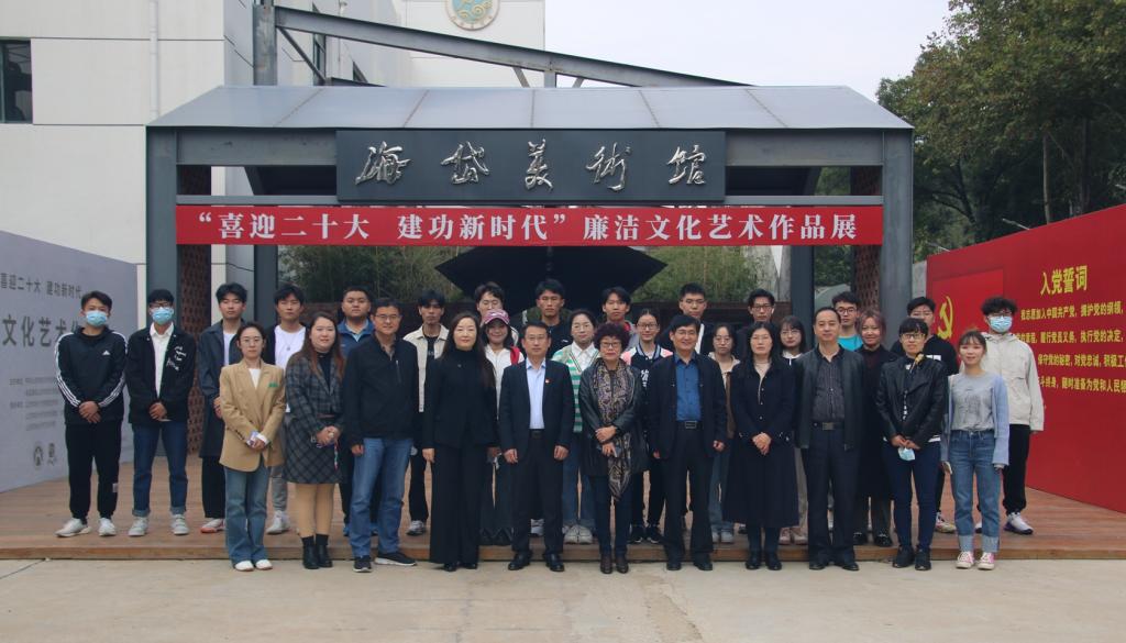 领导班子成员、教师代表、辅导员和学生代表共同在海岱艺术馆参观了廉洁文化艺术作品展。