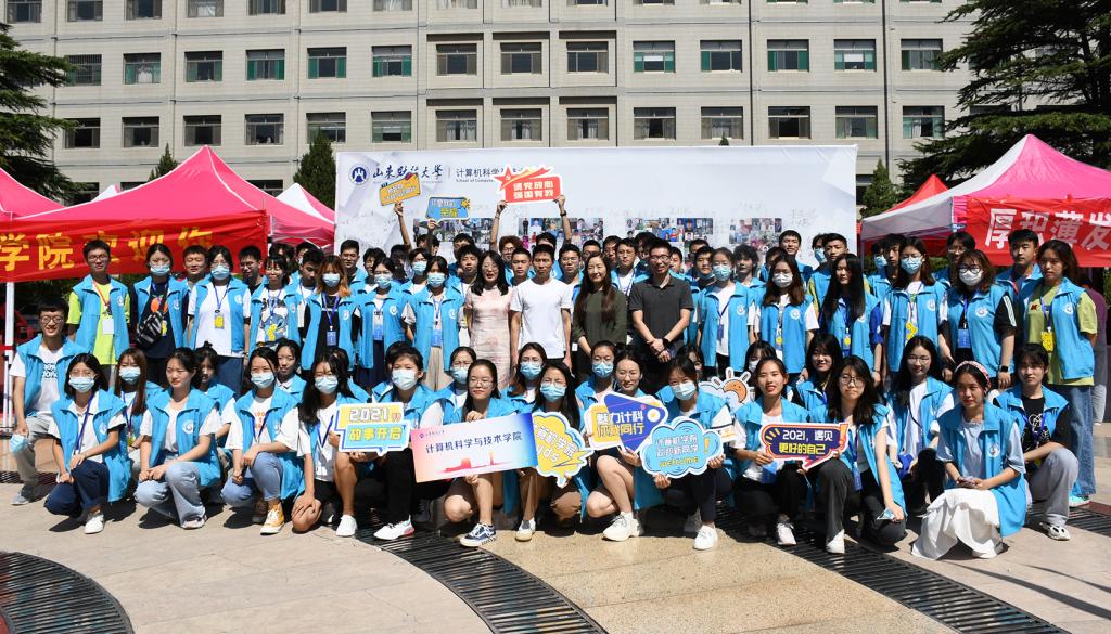 ”,亲切甜美的音乐背景声中,身着“计科蓝”马甲的迎新志愿者忙碌着引导新生进行各项手续的办理;用400余名新生的照片组成的“2021”字样的签名墙,异常醒目,新生们纷纷找寻自己的靓影并合影留念;“有困难,找党员”,迎新现场的党员示范岗前,党员们热心解答家长与学生们的问题。整个过程受到了新生及家长们的一致好评。