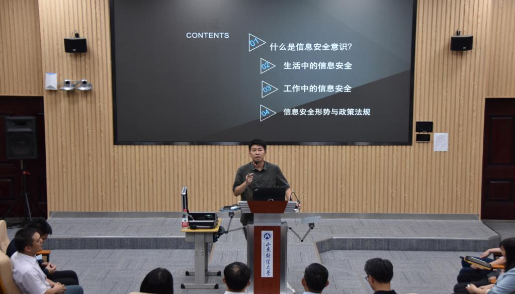 胡建秋围绕什么是信息安全、生活中的信息安全、工作中的信息安全、信息安全形势与政策法规等四个方面,运用通俗易懂的语言,结合真实案例,为同学们讲解了在生活中如何保护个人信息安全、减少隐私泄露,在工作中如何避免发生网络信息安全事故、保障单位和个人利益,同时向大家普及了信息安全的相关政策法规,帮助大家用法律手段来保护自己的信息安全。