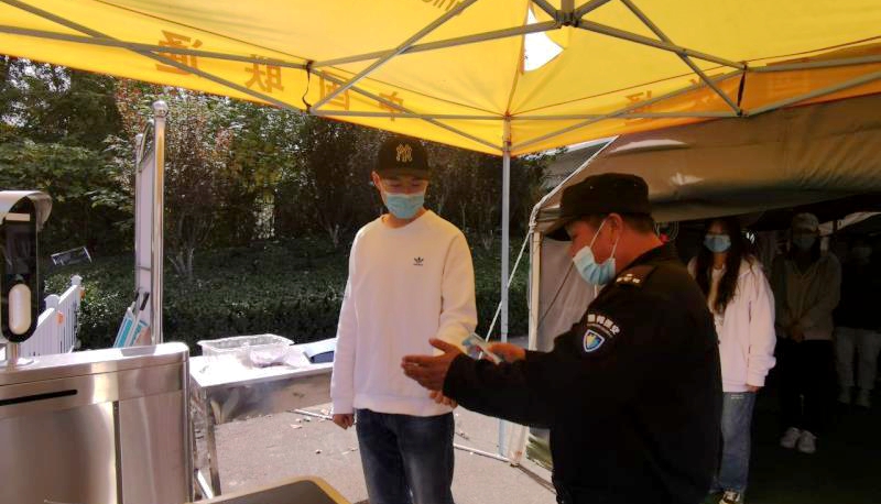 学生入校时在校门口有序排队,人与人之间相隔1米以上,逐一通过检查点和测温点。由学校安保人员对进校学生进行体温检测,学生等待期间不走动,不交流,准备好身份证、学生证、《返校回执》等证件。若检测中发现一名同学体温超过37.3℃,立即引导该生前往临时观察点等候,并由其他同学立即上报辅导员。辅导员第一时间到达现场,安抚学生情绪并向捕鱼达人