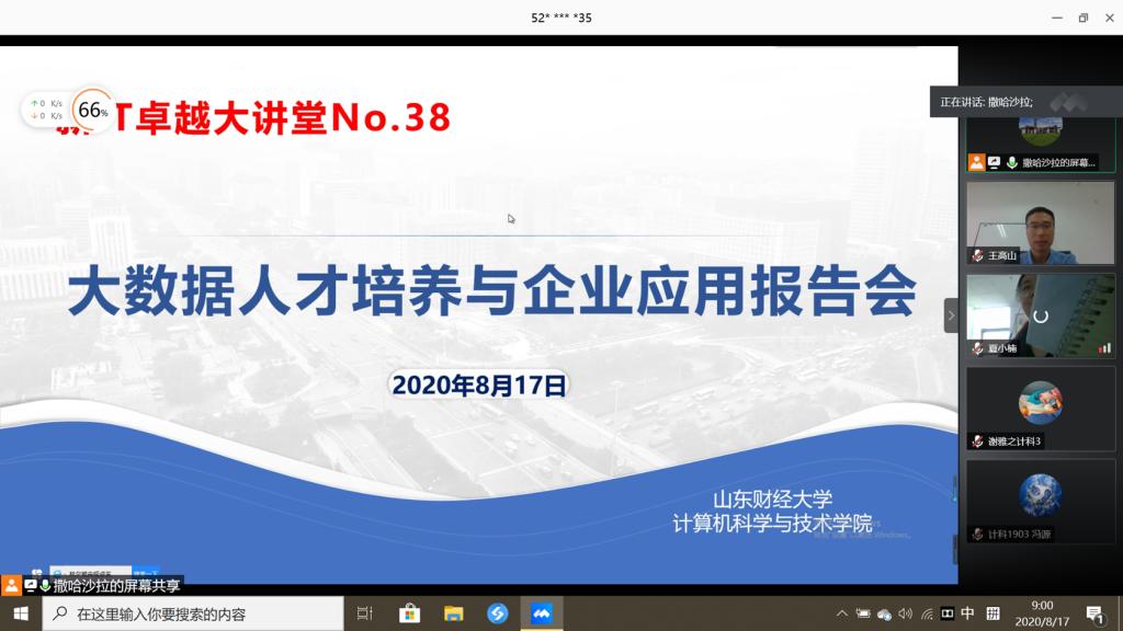 主办的新IT卓越大讲堂第28期“大数据人才培养与企业应用开放报告会”在网上举行。报告会邀请了我校管理科学与大数据系主任王高山副教授、浪潮集团大数据事业部研发交付部经理杨胜华工程师以及山东联科云计算股份有限公司大数据专业金牌讲师韩悦老师作报告。捕鱼达人