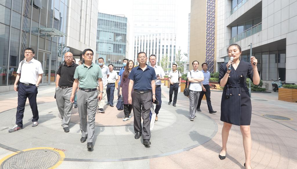 在山东新金融产业园,代表团参观了园区楼宇,听取工作人员关于山东新金融中心成立背景、职能、发展规划的介绍,了解了入住园区的代表性金融单位和基金。