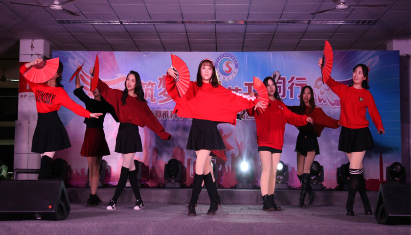 经过近两个月的精心准备和紧张有序地排练,晚会在音韵集乐社火热的开场表演《Iust Tonight》中拉开帷幕,镁光灯将整个舞台照得如同梦幻一般,现场观众迅速融入到晚会的欢快气氛中。本次晚会共分为三个篇章:逐梦想之光、踏追寻之旅、绽青春之花。涵盖歌曲、舞蹈、朗诵、民乐、小品、相声等多个艺术门类,充分展现了计科学子多才多艺、自信昂扬的风采。各种节目轮番登场,异彩纷呈,魅力四射。扇子舞《寄明月》将传统与现代舞蹈元素相结合,刚柔结合、张弛变换;小品《真假老师》重新演绎央视春晚的经典力作;校艺模特队带来的《you are the one》给大家带了一场视觉盛宴;火爆全场的说唱《离开》将晚会推向高潮。源源不断的惊喜让我们应接不暇,现场观众掌声不断,无处不展现着计科学子的青春与活力。