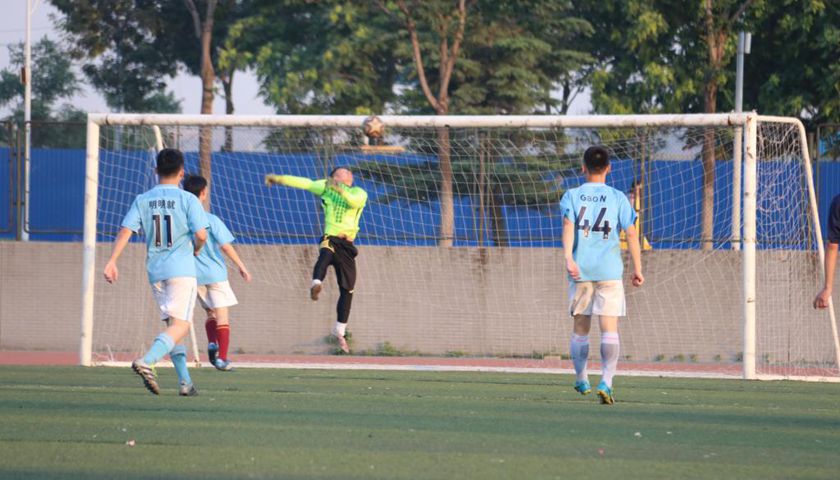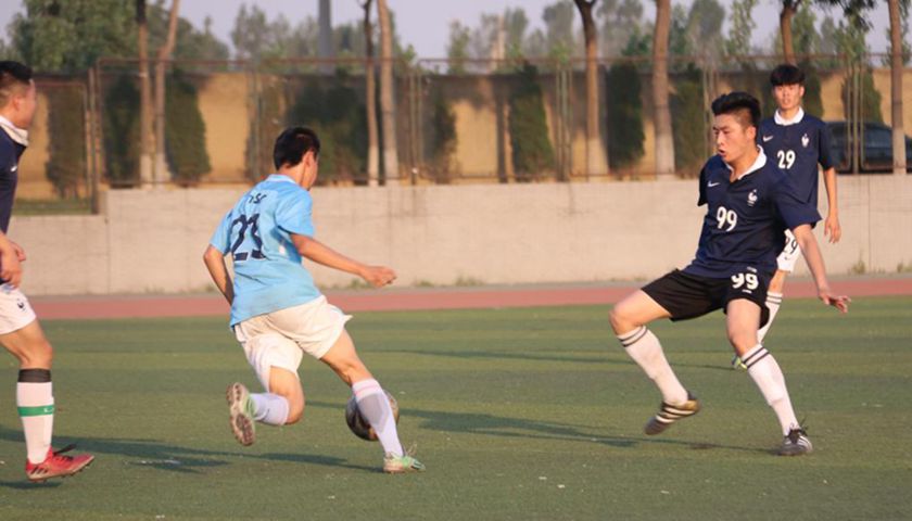 足球队在本届院赛的最后一场比赛,队员们全力以赴、顽强拼搏,最后取得了第四名的成绩。