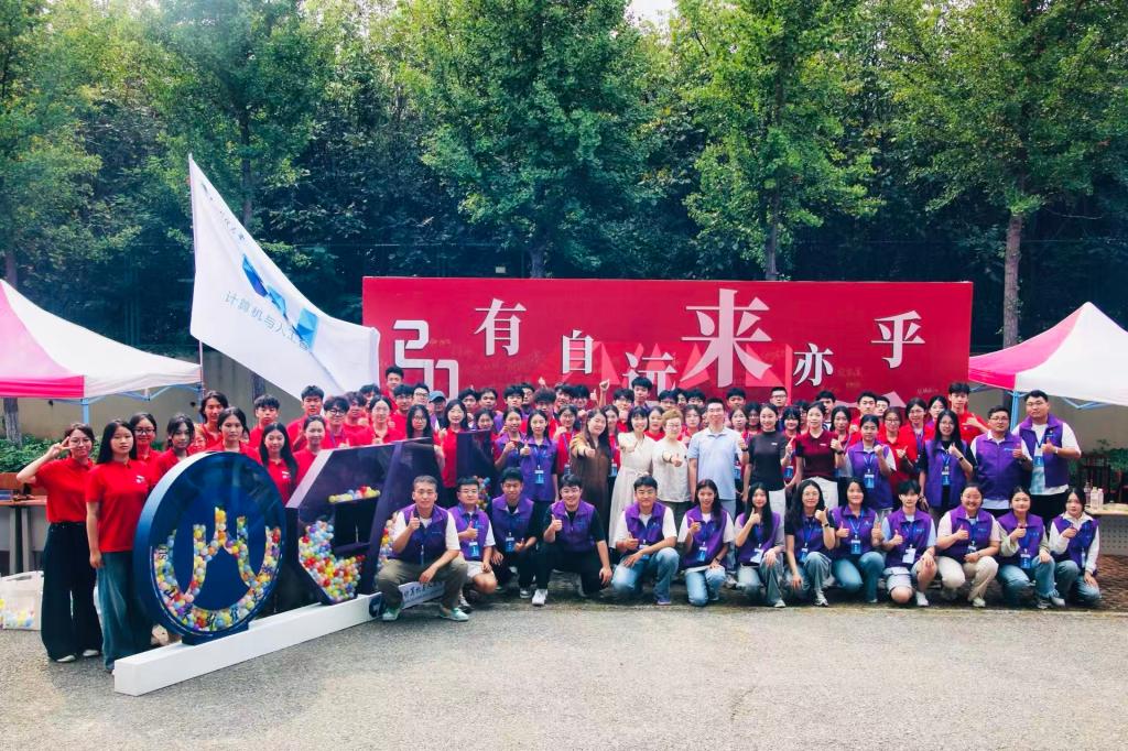 精心打造的“有朋自远方来不亦乐乎”主题签名墙成为迎新现场的“打卡热点”。新生们纷纷驻足签名,来自山东高唐的本科生王艺霏笑着说:“签下名字的瞬间,真切感受到自己成为了捕鱼达人