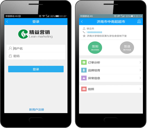 系统采用面向对象的系统分析与设计方法,结合AJAX技术、组件式指标数据计算技术、Web开发技术、分布式管理技术和数据库技术等,开发实现面向网络环境、一体化的、综合的基于移动互联的精益营销管理系统。系统以GIS/GPS、移动互联为支撑,综合数据分析应用、移动终端管理、客户经理移动工作台、客户经理精细管理等主要功能。