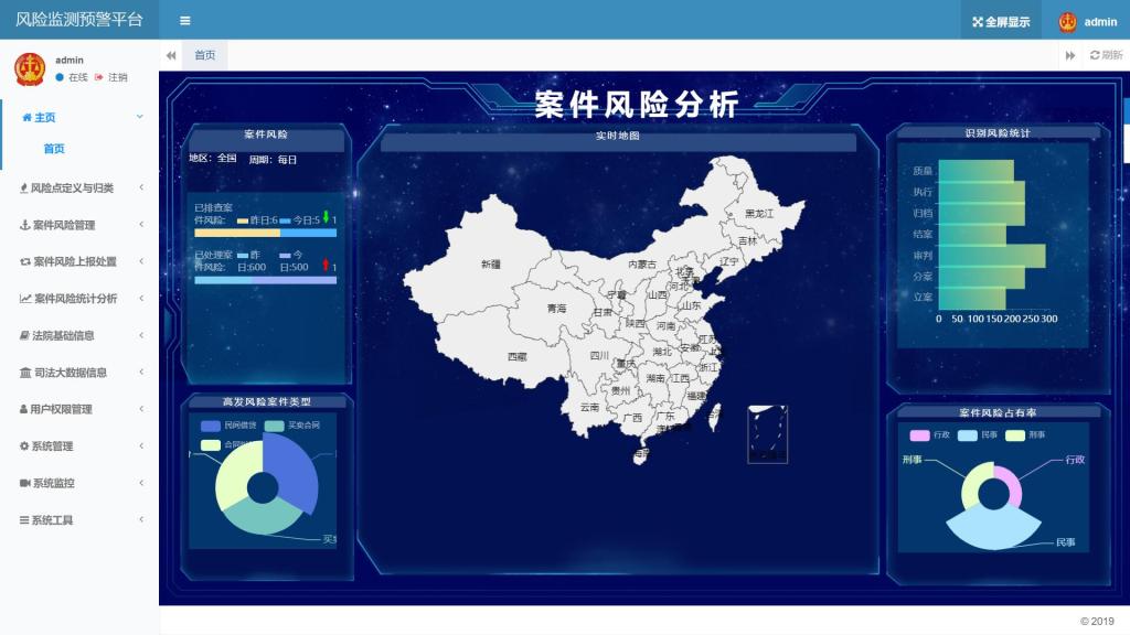 本系统解决了传统司法审案中风险识别依赖于人工甄别或简单系统判定的缺陷,实现案件审判风险的自动排查和风险预警的智能推送,为法院建立高效的风险防控机制提供有力的科技支撑。本系统的研发工作得到国家重点研发计划的立项支持。