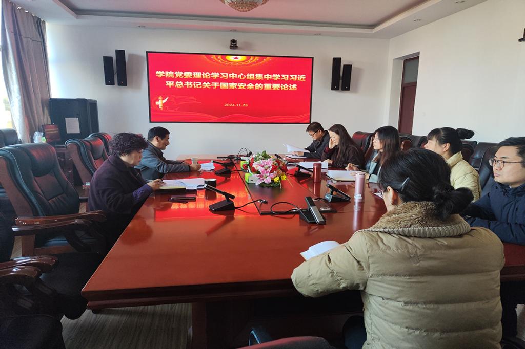 工作实际,就如何贯彻落实习近平总书记关于国家安全的重要论述发表了看法。大家一致认为,要提高政治站位,增强防范和抵御安全风险的能力,严密防范和坚决抵制各种危害国家安全的违法犯罪活动。同时,要通过广泛宣传等形式加强国家安全教育,常抓不懈,提高全院师生的国家安全意识,推动形成维护国家安全的强大合力。
