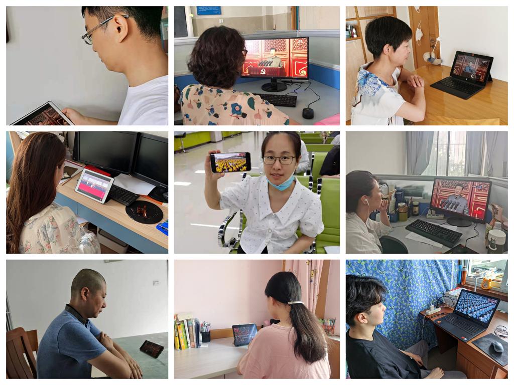 党政领导班子、各支部师生党员代表齐聚1406会议室收看庆祝中国共产党成立100周年大会直播盛况,其余师生自行组织观看并学习,一起庆祝中国共产党成立一百周年,共同回顾中国共产党百年奋斗的光辉历程,展望中华民族伟大复兴的光明前景。